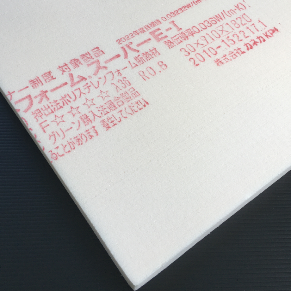 硬さと難燃性を備えた板状の発泡ポリスチレンです。省エネルギー、環境配慮などの観点から住宅の断熱材として床下や屋根材・外壁の下に使用されています。その他にも土木用や畳製品など様々なシーンで使われています。独立した気泡構造により吸水・吸湿性もほとんどない為、断熱性能の劣化が起きにくく、完全ノンフロン化により環境対策にも適した断熱材です。